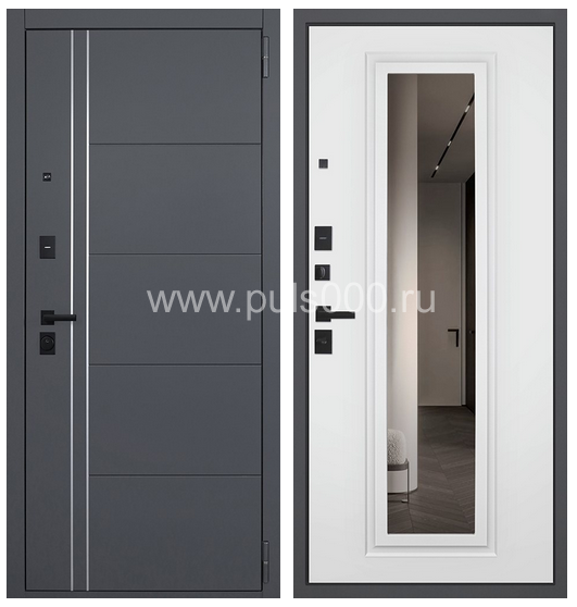Металлическая дверь входная с узким зеркалом ZER-105 может быть произведена под любой размер проема и в любом цветовом решении. Также возможно изменить параметры конструкции и комплектацию замков.